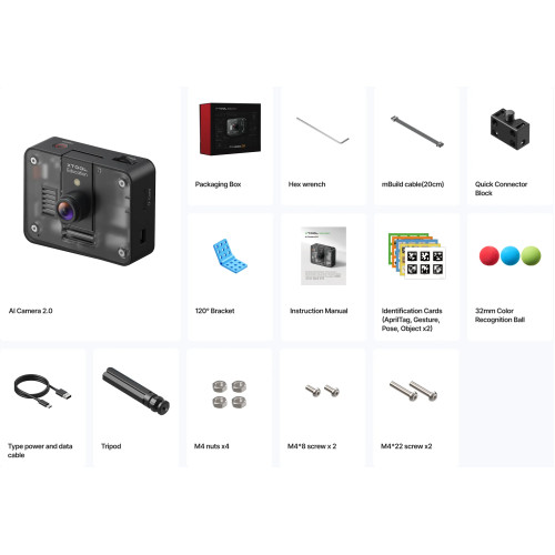 AI Camera 2.0 是一款全新的 AI 視覺模組,專為 **K-12 階段的人工智慧教學**設計,滿足從基礎程式設計教學到高級 AI 模型訓練的多種應用需求。該模組能夠與現有的程式設計機器人和平臺(如 mBot2、CyberPi)無縫整合,提供一站式的 AI 教育解決方案。學生可通過圖形化程式設計或 Python 程式設計直接控制模組並觀察 AI 識別結果,理解 AI 背後的原理,並實現各種識別功能。